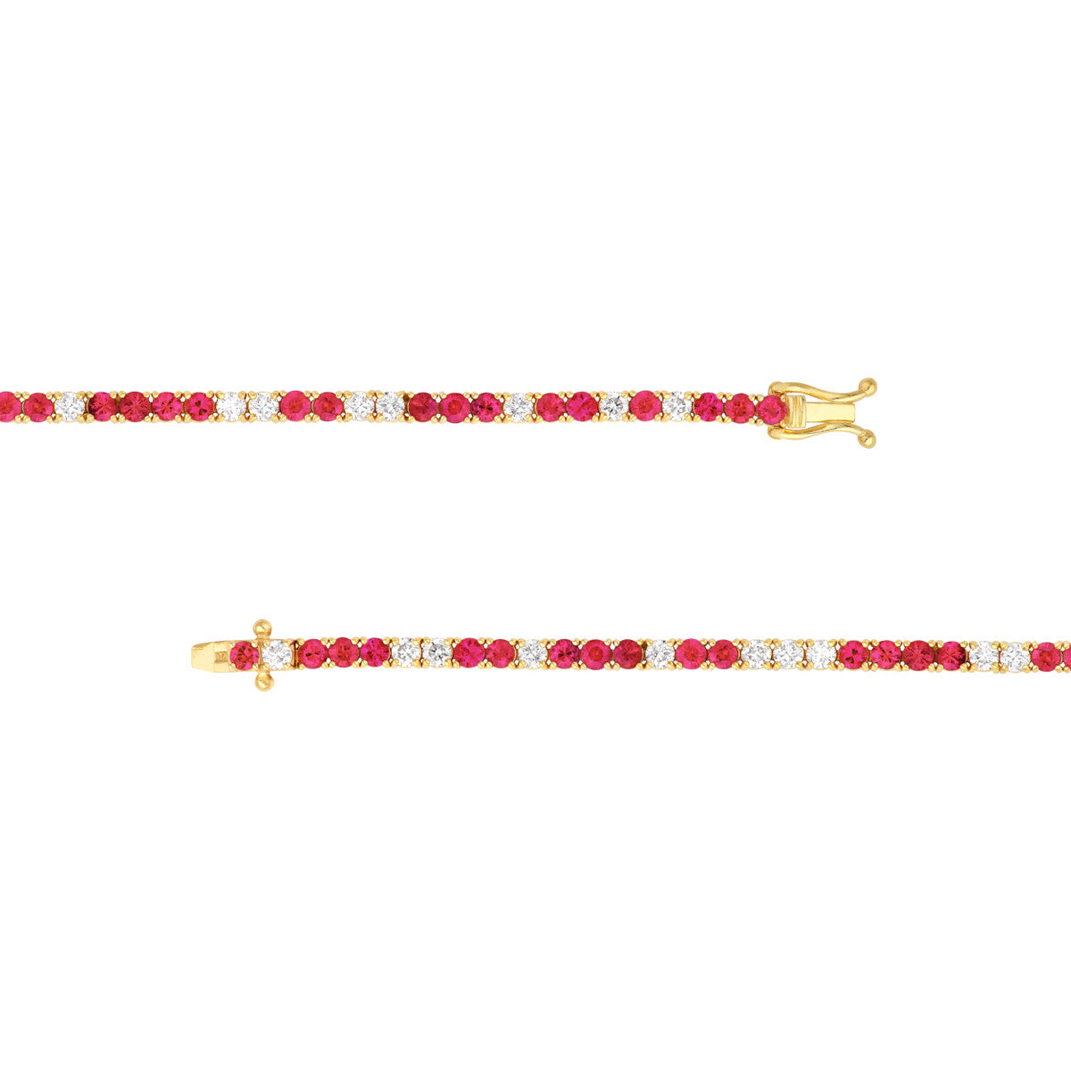 Below are the details of our 14k Gold Ruby and Diamond Tennis Bracelet. Please reach out if you have any questions.